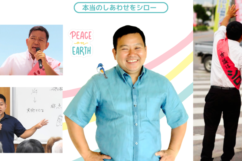 本当のしあわせをシロー!「島のしあわせ、市民とともに」 農業、環境、平和を大事にして、市民と一緒に力を合わせて、持続可能な社会を作り上げようと頑張っています。