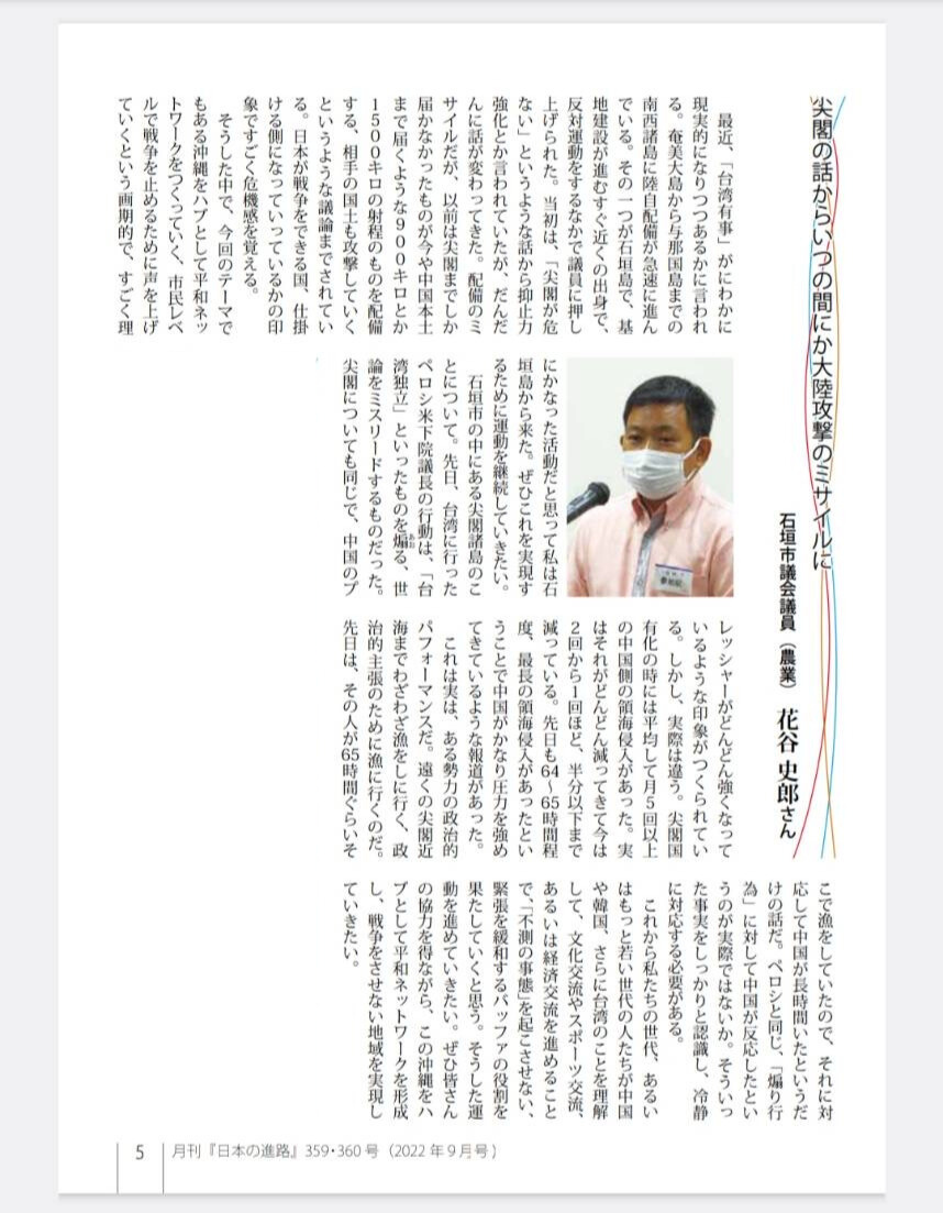 月刊「日本の進路」359・360号(2022年9月号)へ花谷シローの寄稿文が掲載されました。