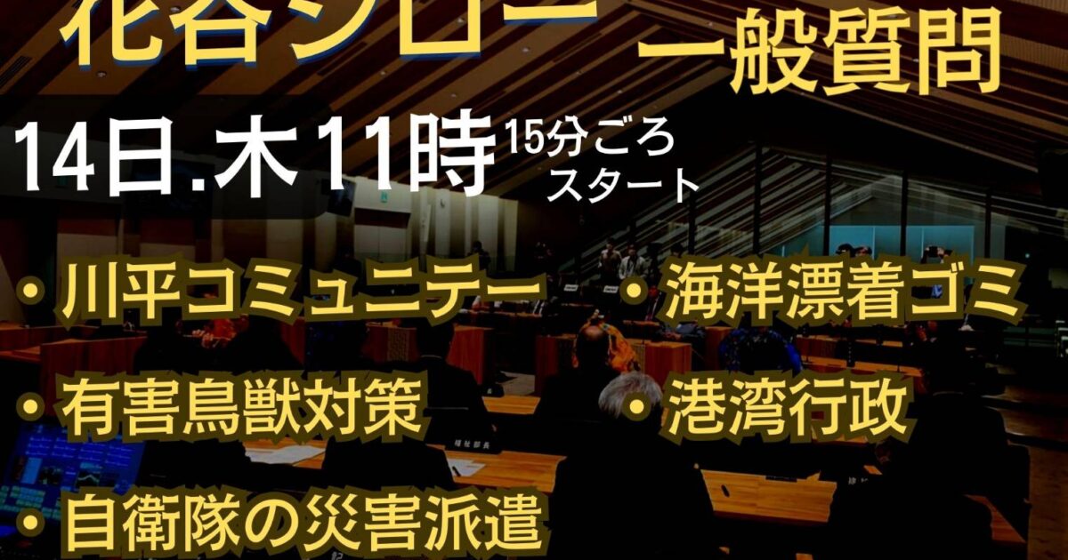 令和6年3月14日 3月定例会 花谷史郎議員一般質問 ぜひ、ご覧ください。