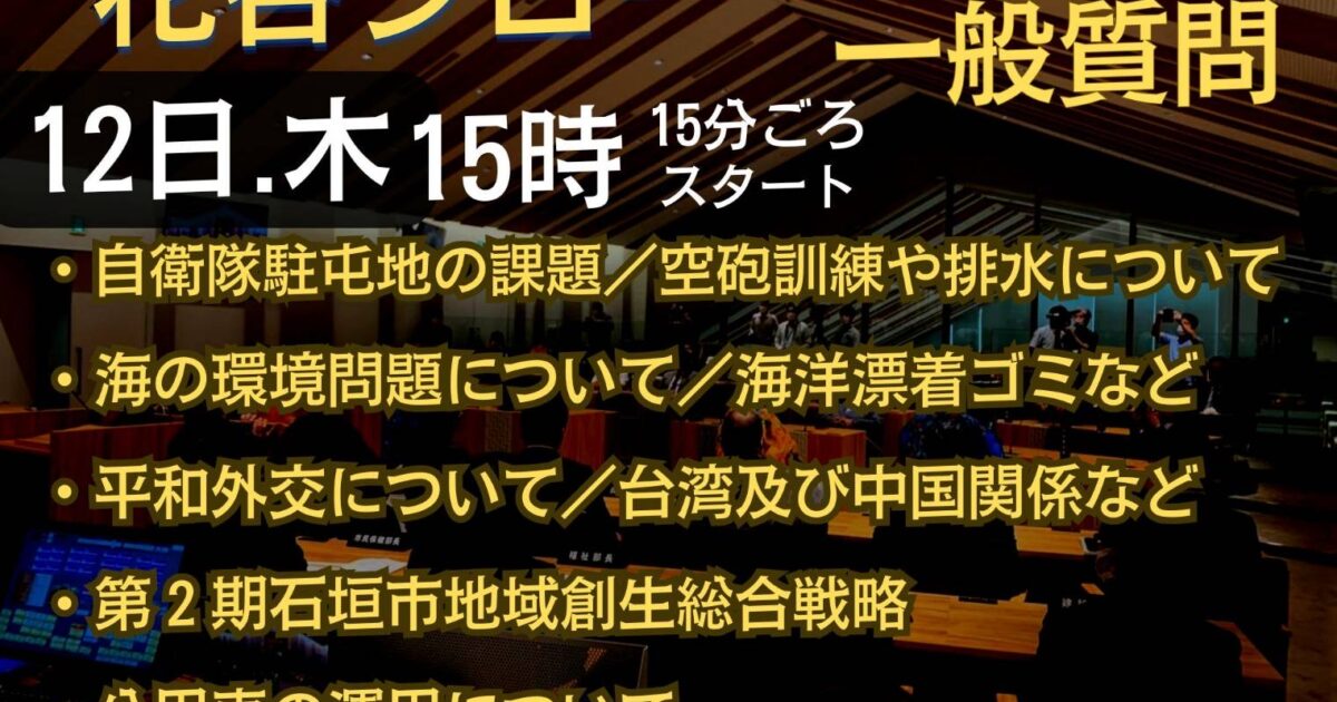 平素より格別のご高配を賜り、厚く御礼申し上げます。 この度、2024年3月15日(金)に石垣市議会議員「花谷シロー」公式サイトを開設いたしました。 これからも市民の皆様のお役に立てる情報発信と、より一層の内容充実に努めて […]